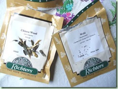 See how teensy the weld seeds are compared to the Chinese woad (which look exactly like regular woad seeds as far as I can tell). You can’t judge the size of a plant by the size of its seeds! They will both be similar in height and width – eventually. I hope. The timing was good anyhow. When the package arrived I was already down at the “grow-op” planting more things: 3 kinds of summer squash (Goldrush zucchini, Eight Ball round zukes, and yellow pattypan squash), Lemon cucumbers, and more basil, lettuce and arugula. I also finally remembered to start the carrots. Doh. They should have been ready to go in the garden by now. Oh well. They never do that well around here anyway. The evil rust fly larvae drill them full of holes right about the time they are big enough to eat. Sad really. Don’t know why I keep trying but surrounding the plants with coffee grounds seem to help a wee bit. Life is based on hope, right? I can always dye with the carrot tops if nothing else.
